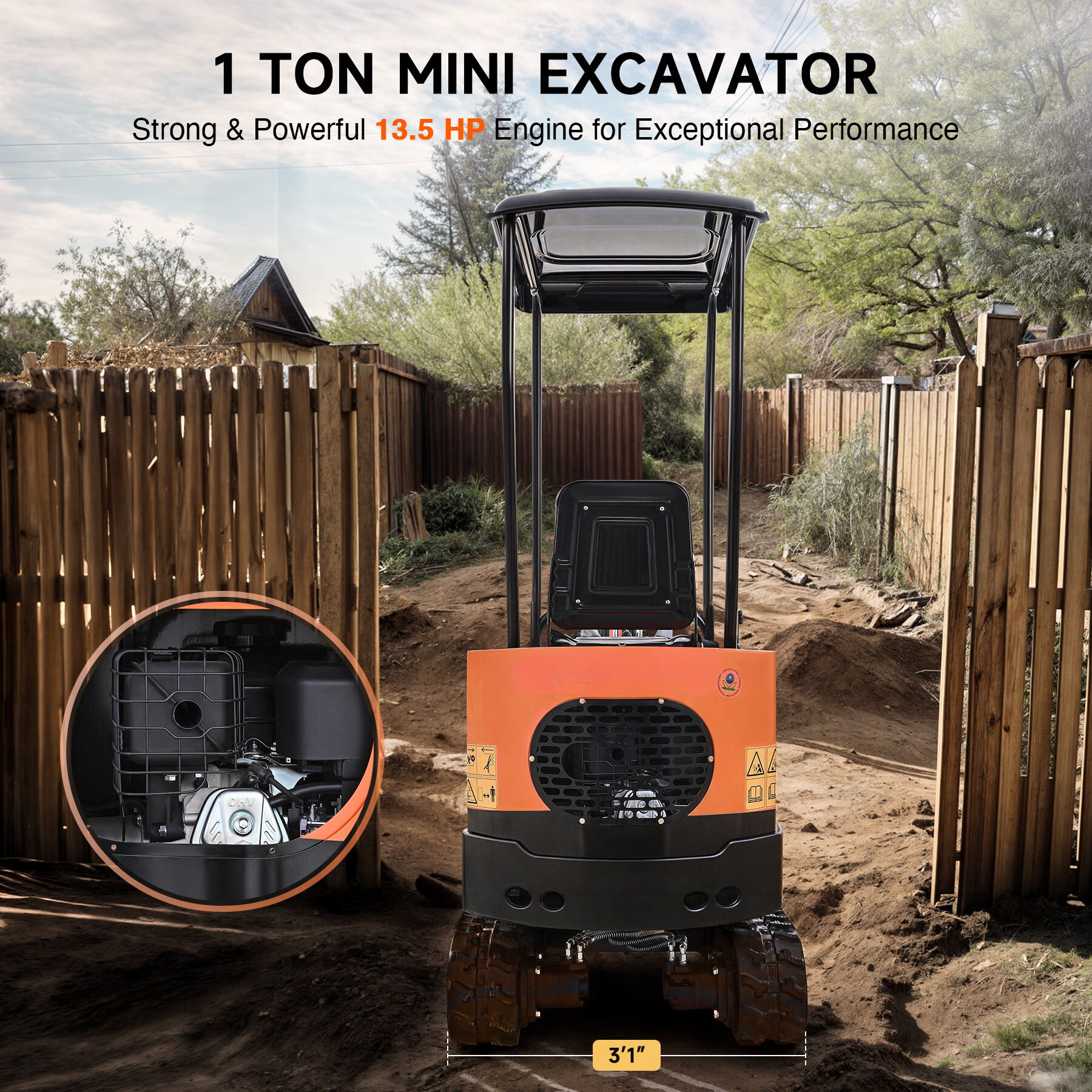 • Efficient Motor: Our heavy-duty mini digger, with a strong 13.5 hp EPA certified engine, exceptional heat dissipation, and an impressive digging force of 2585 lbf, ensures powerful and precise performance for demanding and rigorous excavation tasks.